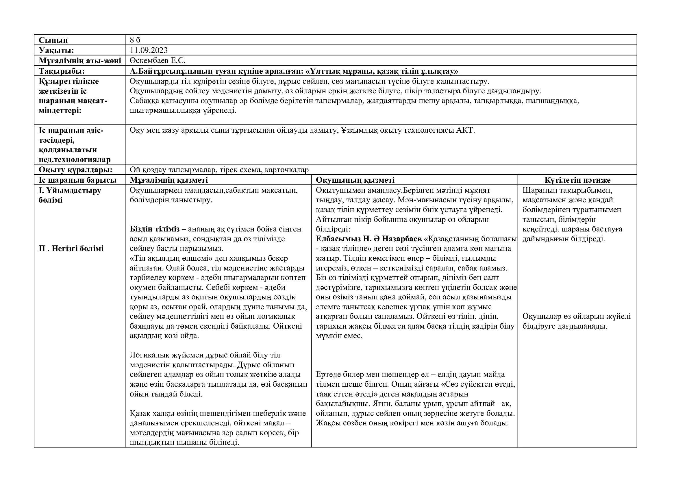 Lesson study сабағына рефлексивті есеп