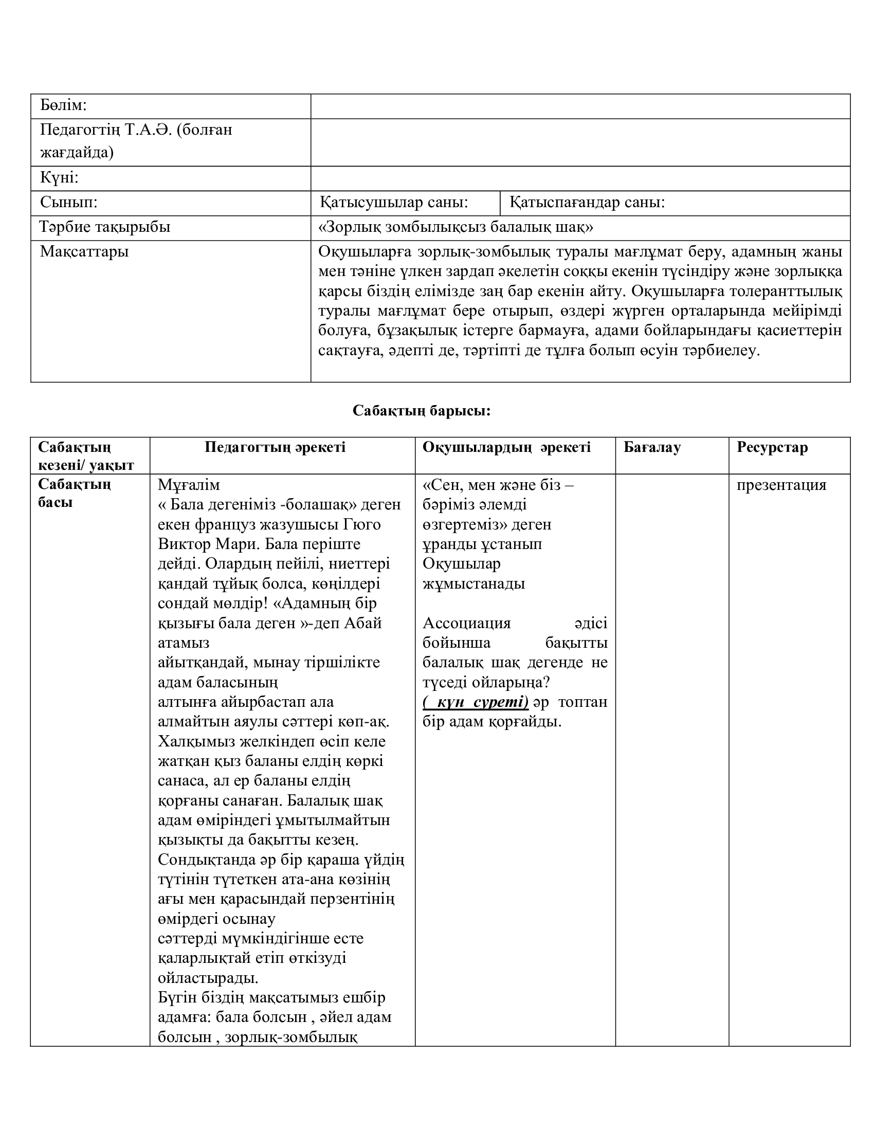Сабақ жоспары, дидактикалық материал...
